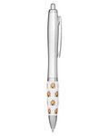 - Retractable curvy plastic barrel ballpoint pen with stock art grip featuring a House Emoticon